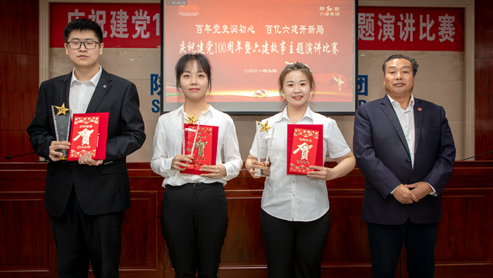 舞臺上,選手們精彩的演講贏得了臺下觀眾一次次熱烈的掌聲。經(jīng)過一個多小時的激烈的角逐,最終,五公司陳釔潼、孫科演講的《平凡英雄 向善而建》獲得一等獎,三公司郭文崗演講的《一號工程背后的速度與激情》、嚴(yán)晟奚演講的《歌百年豐功,創(chuàng)盛世輝煌》獲得二等獎,機(jī)關(guān)黨政辦公室趙良琛演講的《與黨同心,與時代并行》、七公司康歆媛演講的《百年風(fēng)華,點(diǎn)亮青年未來》、安裝一公司楊佩琦演講的《披荊斬棘勇攀登,百億六建創(chuàng)輝煌》獲得三等獎。