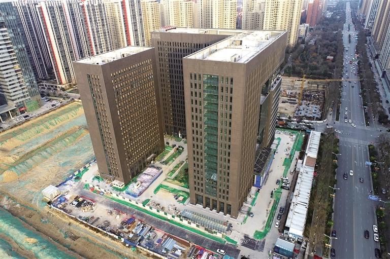 (本報記者 田若楠文/圖)2月19日,在陜西燃氣產(chǎn)業(yè)研發(fā)與孵化基地項目現(xiàn)場,建筑工人大干快上加快建設。眼下,該項目的主樓已封頂,正在進行外幕墻、內(nèi)部裝飾裝修及室外工程施工,預計5月項目竣工并投入使用。