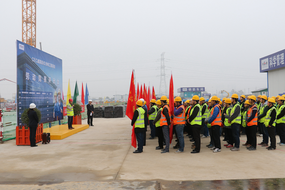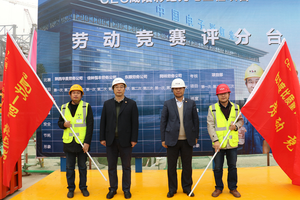 會(huì)上,集團(tuán)公司副總經(jīng)理、勞動(dòng)競(jìng)賽委員會(huì)副主任弓閩龍宣讀了《CEC咸陽(yáng)彩虹光電工程項(xiàng)目勞動(dòng)競(jìng)賽實(shí)施方案》,并對(duì)競(jìng)賽的任務(wù)目標(biāo)、考核辦法、考核標(biāo)準(zhǔn)及獎(jiǎng)勵(lì)辦法進(jìn)行了說(shuō)明。接著,勞動(dòng)競(jìng)賽委員會(huì)主要領(lǐng)導(dǎo)分別為陜西華昱、佳林恒豐、陜西東順和陜西同祥4支參賽的勞務(wù)公司和受考核的CEC咸陽(yáng)彩虹光電工程項(xiàng)目部進(jìn)行了授旗。授旗儀式后,4個(gè)勞務(wù)公司和項(xiàng)目部代表分別進(jìn)行了表態(tài)發(fā)言。